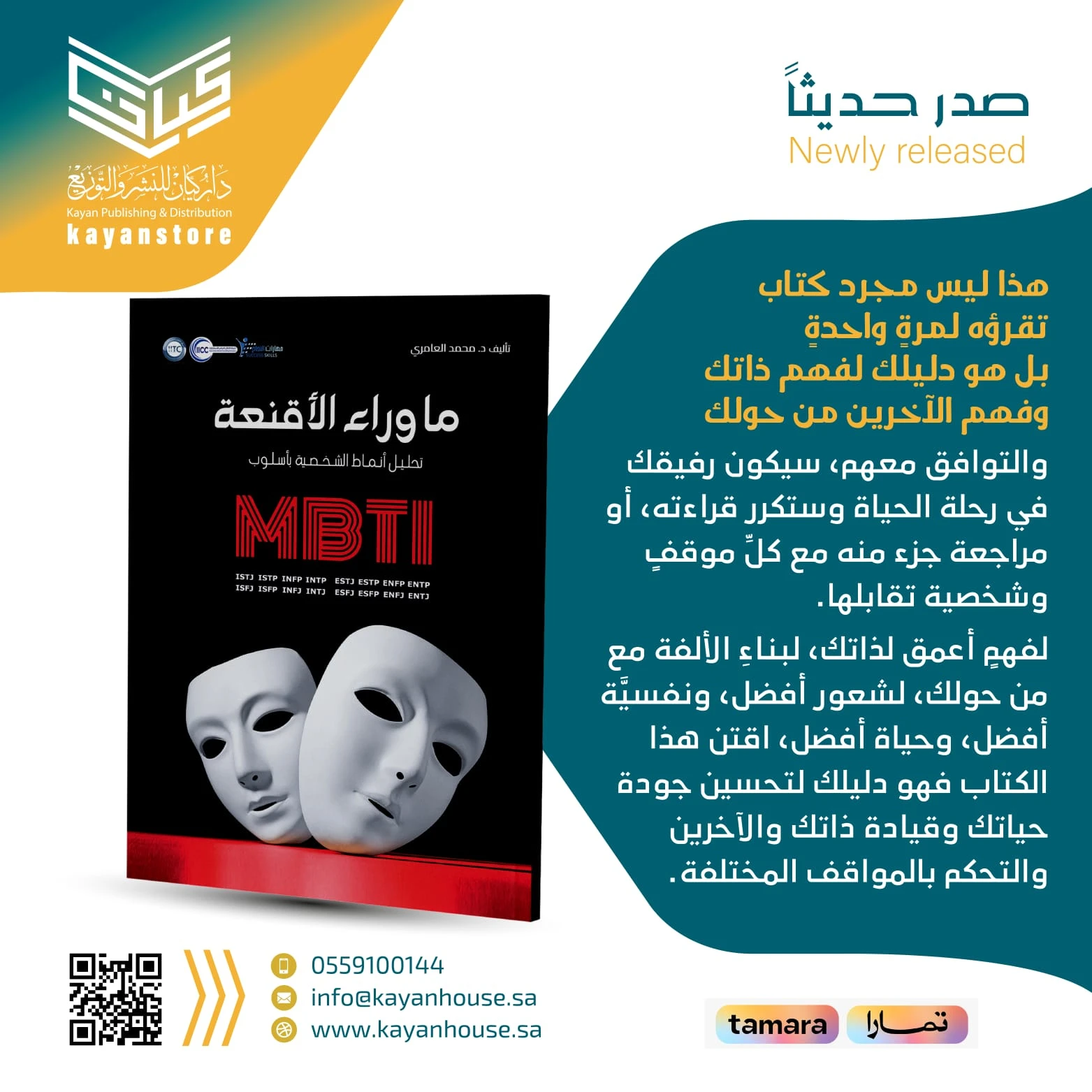 كما أن كتاب ما وراء الأقنعة ( تحليل أنماط الشخصية بأسلوب MBTI ) تأليف د. محمد العامري حالياً متوفر في قارئ مكتبة جرير JARIR BOOKSTORE